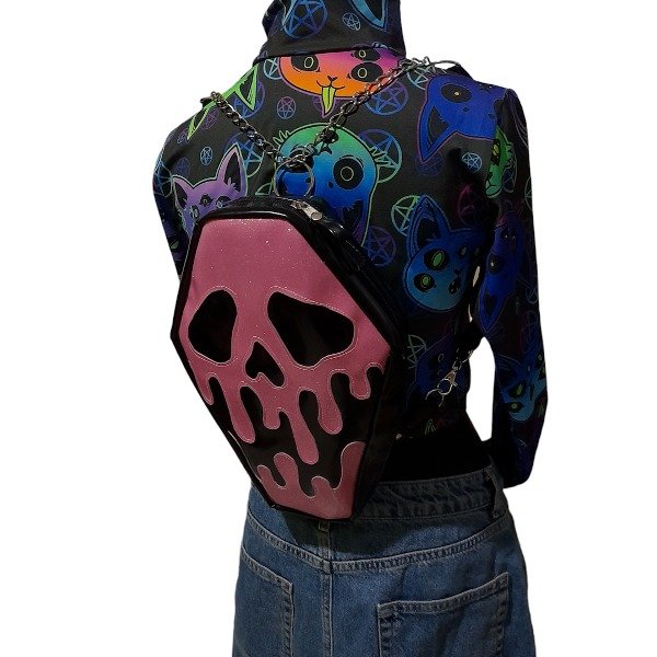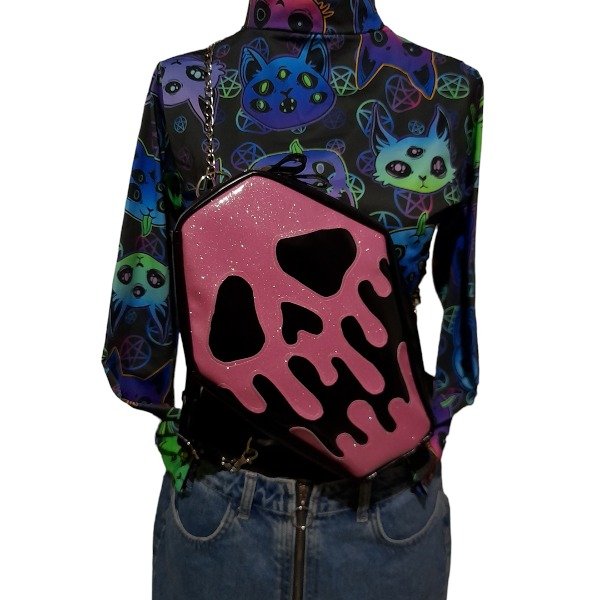 Ecocuero charol negro y rosa glitter.